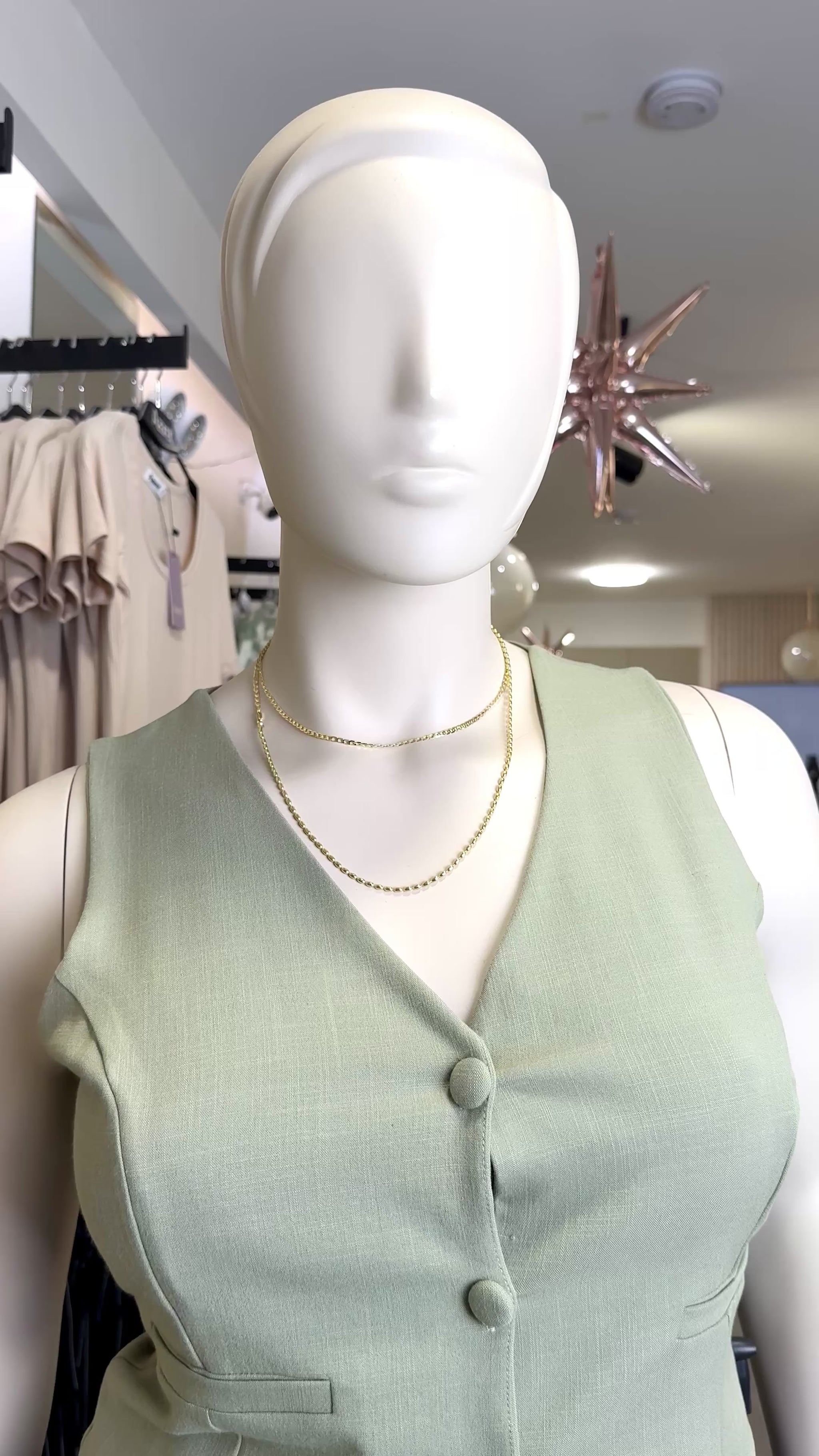 Este chaleco aporta textura y una elegancia natural, ideal para sumar capas sin recargar el outfit.